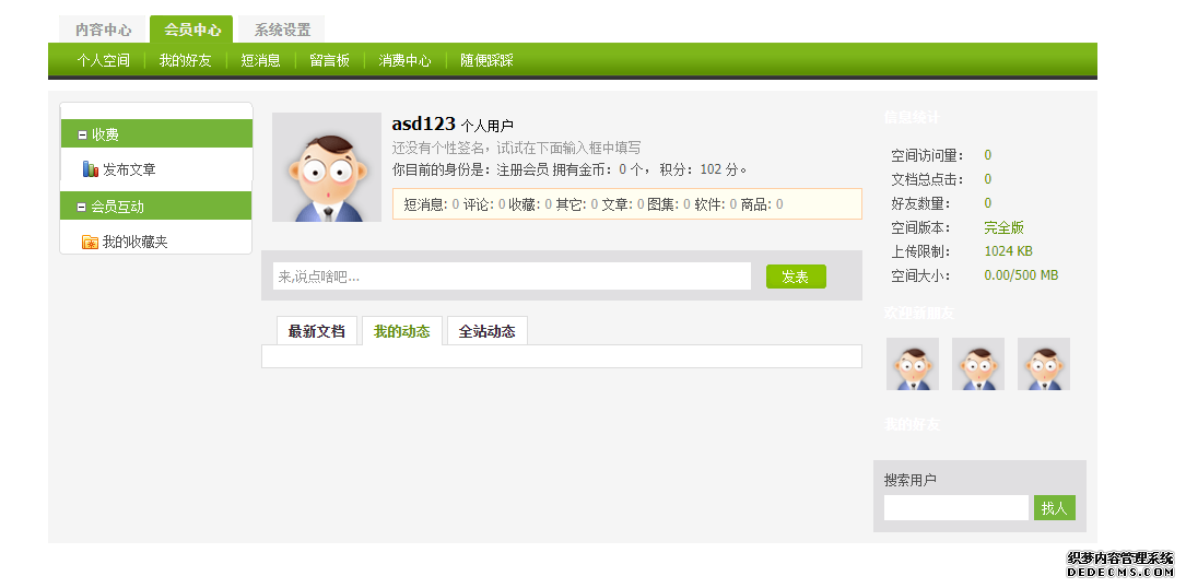 第三步,登录会员成功后,进入会员中心,点击会员中心左侧发布文章,进入发布文章界面